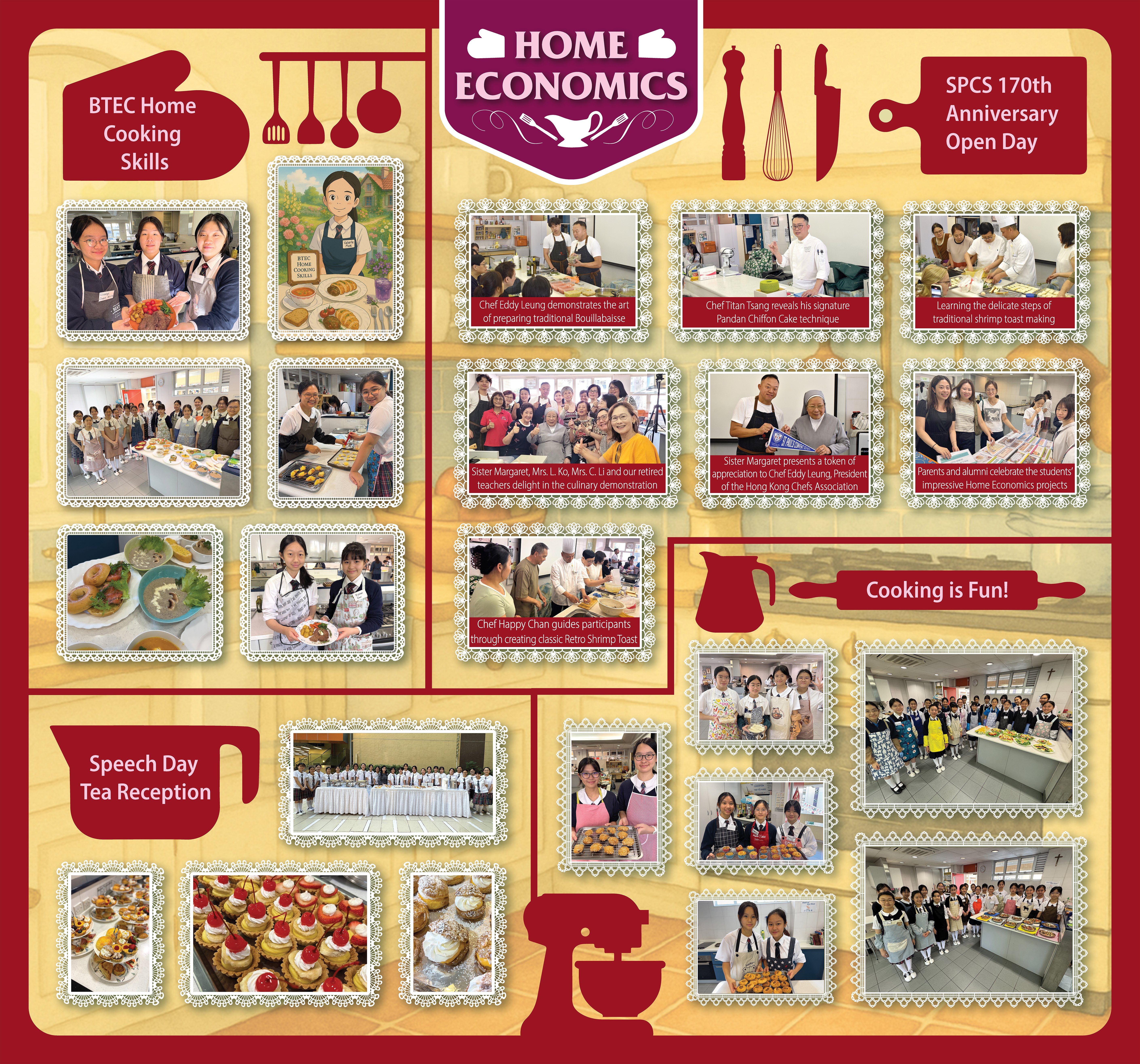 To commemorate the 170th Anniversary of St. Paul's Convent School, the Home Economics Department contributed to the celebrations in numerous ways. We provided snacks for Family Fun Day, trained students to develop menu designs for the 170th Homecoming Gala Dinner, and hosted cooking demonstrations by celebrity chefs during the school's Open Day.